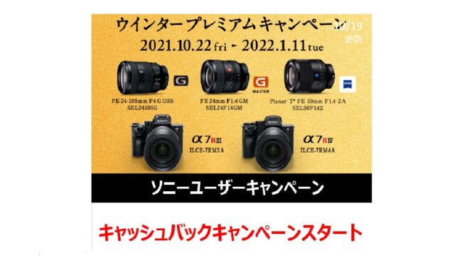 ◆キャンペーン概要 キャンペーン期間(購入期間)内に対象商品を購入ご応募されたお客様に、最大50,000円(対象のカメラとレンズ同時購入で更に10,000円)がもれなくキャッシュバック。 ◆キャンペーン期間 2021年1…