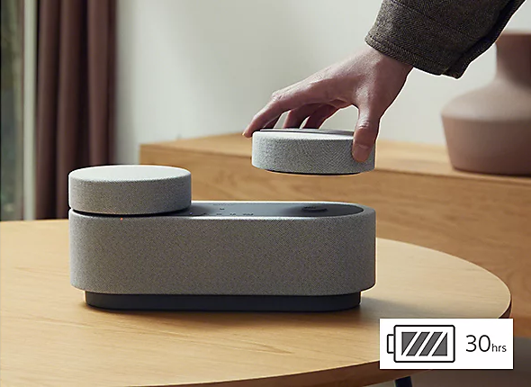 ポータブルシアターシステム『HT-AX7』はリビング ルームや ダイニング ルーム 、寝室など家の中の 好きな場所に持ち運ぶことができ 、 かつ フロントとリアスピーカーを 自由なレイアウトで…